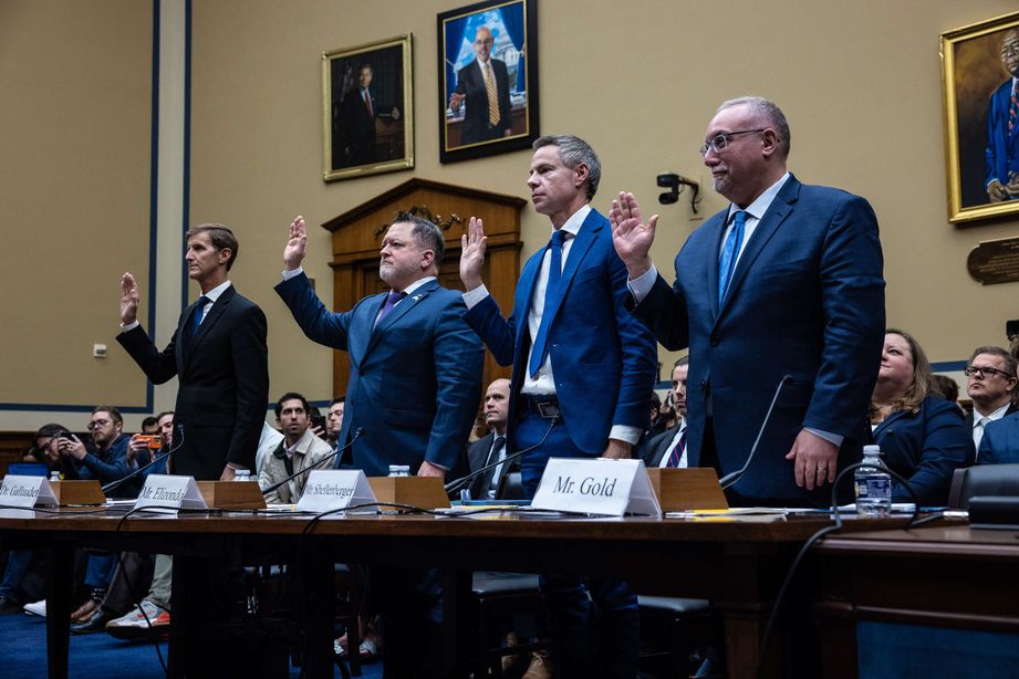 Among other things, US Navy Rear Admiral EVP Tim Gallaudet (left) and former intelligence officer Luis Elizondo (second left) were at the hearing of the country’s Congress on Wednesday. EPA/AOP